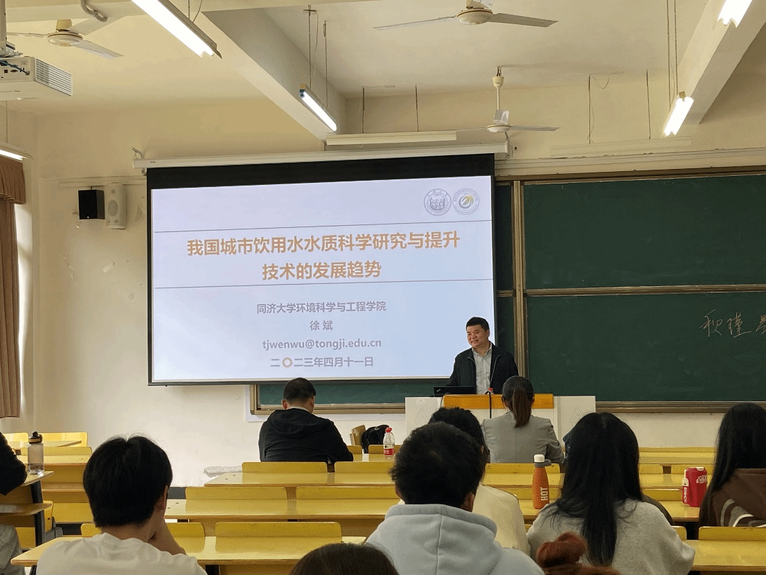 报告会上,徐斌从我国饮用水现状入手,并就“饮用水关注的新兴水质问题”“饮用水卫生标准发展与方向”“饮用水处理新技术工艺发展”“城市优质饮用水的供给案例”“未来供水系统发展方向趋势”等五个部分进行重点讲授。