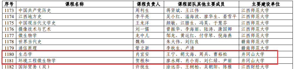 近日,教育部公布了第二批国家级一流本科课程认定结果,我院肖宜安教授主讲的《生态学》课程及贺根和教授主讲的《环境工程微生物学》课程成功获批为国家级一流本科线下课程。