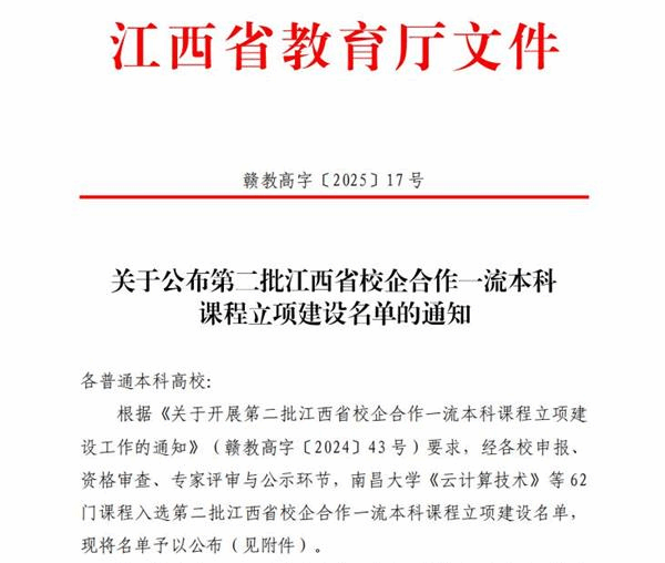 喜报!我院2门课程入选江西省校企合作一流本科课程