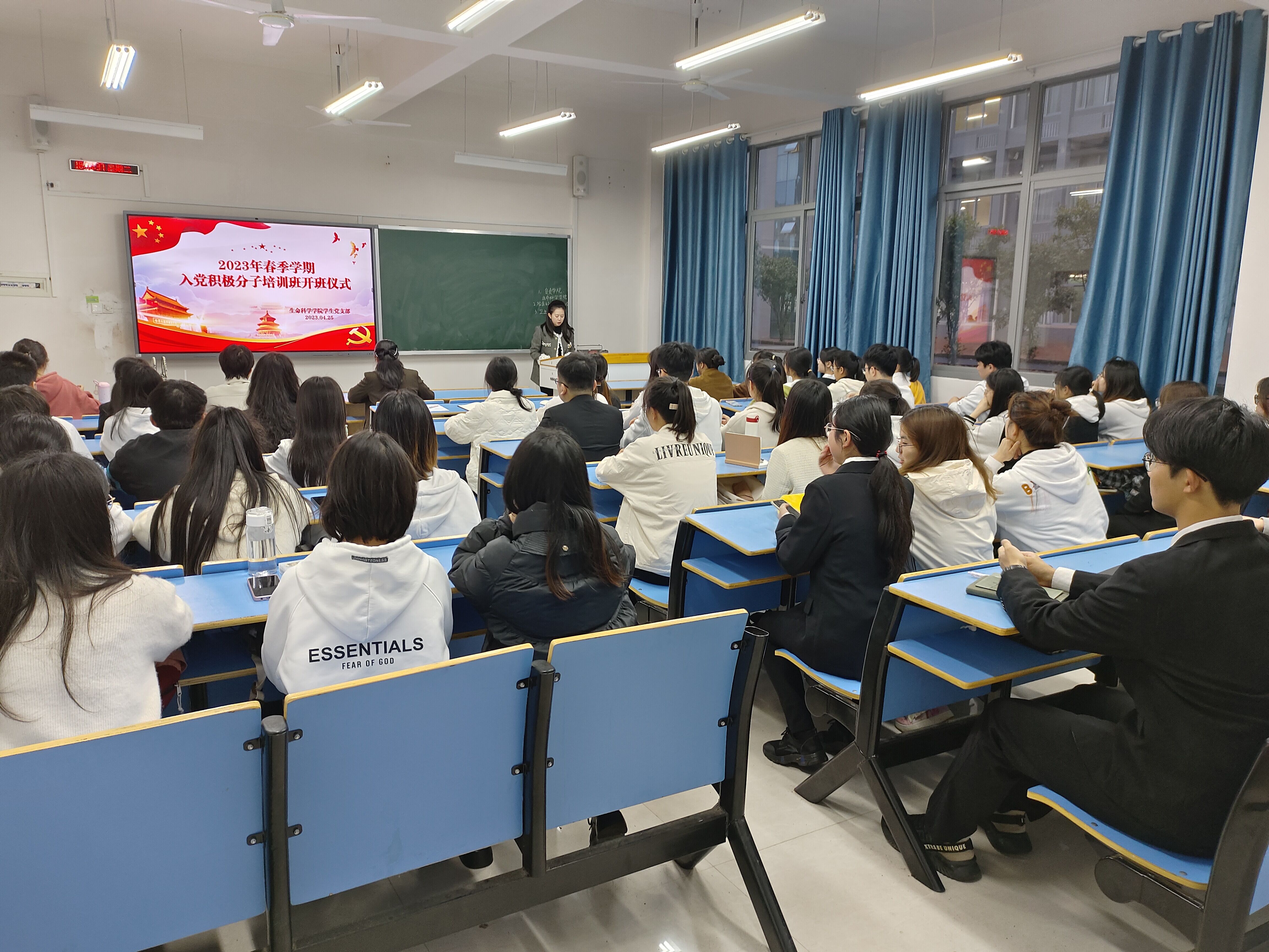 为全面学习贯彻习近平新时代中国特色社会主义思想和党的二十大精神,扎实做好党员教育培训工作,进一步提高党员发展质量,我院于4月25日晚上举行开班仪式。本次开班仪式由学生党支部书记任梦雅主持,学院党委副书记何旭梅出席,22级辅导员肖虹以及57名入党积极分子参加。