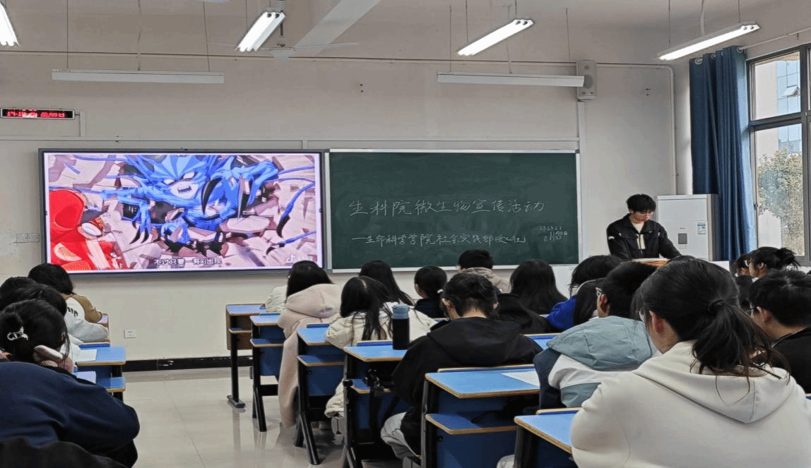 为加强同学们对微生物的认识,预防由微生物引起的疾病,我院于1112日下午,在21102教室开展了“知微生,护健康”讲座。本次讲座由社实部成员卢俊杰主讲,23新生参与。