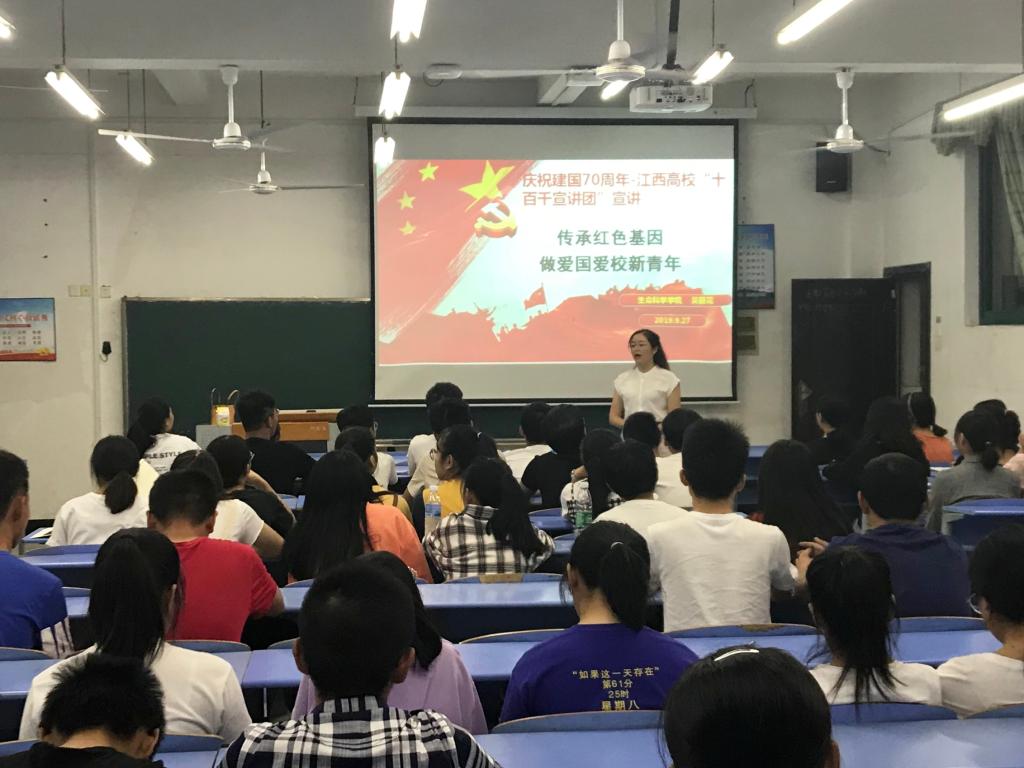 为提高学生党员与积极分子的政治素养,同时增强19级同学的爱国热情,新生辅导员兼学生支部书记吴丽花老师于9月27日,在9栋206进行主题为“传承红色基因,做爱国爱校新青年”的党课宣讲,该党课也作为一场辅导员爱国主义形式宣讲。学院全体学生党员、积极分子以及19生科、19园林的全体同学出席了本次会议。