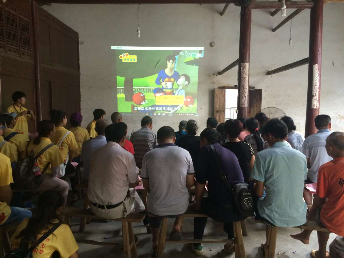 一到达村里,社会实践团全体成员便分头行动,挨家挨户给村民们发放安全知识宣传单,而后在大路村宗祠里为村民们举办了一堂以“学习自我保护,提高安全意识”为主题的安全知识讲座。讲座中,队员张条同学结合趣味性的图片和视频,开展了防溺水、防触电、防火灾、防交通事故等安全自护知识宣讲,期间还穿插了有趣的有奖问答环节,新颖的宣讲活动形式深深的吸引了到场的村民。