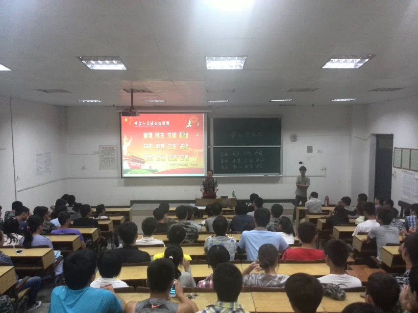 9月21日晚,5栋教学楼205教室播放了有关社会主义核心价值观的视频,这是学院团委组织部组织全院新生开展的“社会主义核心价值观”系列学习活动之一。2014级环境科学班班主任曹裕松老师以及新生班各班班助也参与了此次活动。