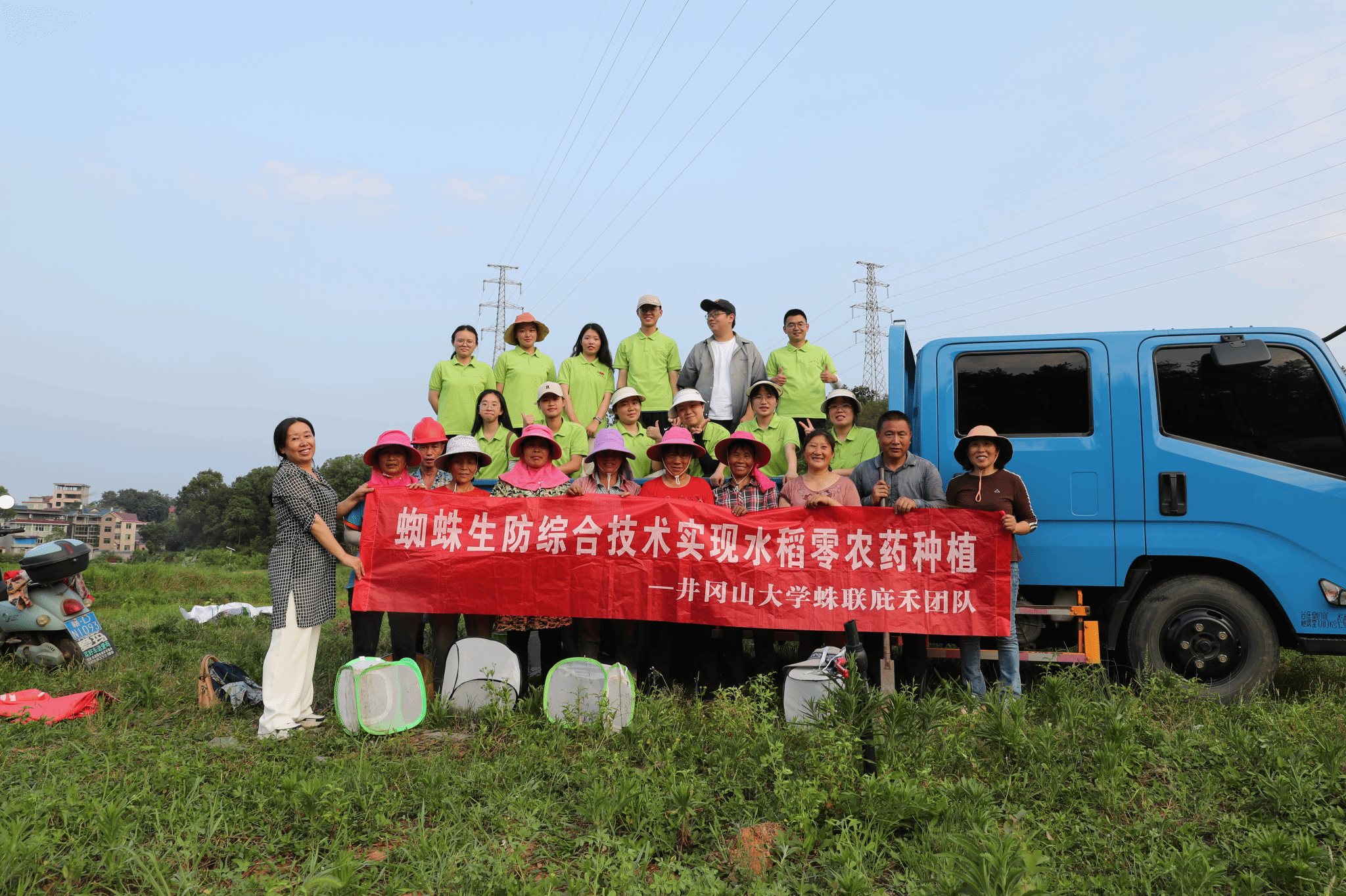 图 冯慧颖及团队在实验基地投放蜘蛛