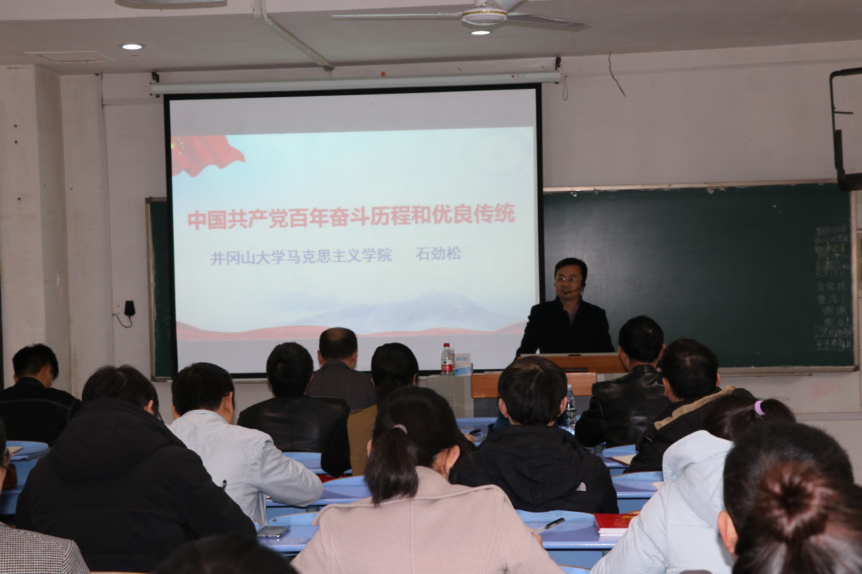 4月15日下午,学院在9-107大教室举办党史学习教育宣讲报告会,院长黄族豪主持,学院领导班子成员和全体师生党员参加。学校党委党史学习教育宣讲团成员、马克思主义学院副院长石劲松博士以《中国共产党百年奋斗历程和优良传统》为题,讲授了一堂深刻的党史学习教育课。