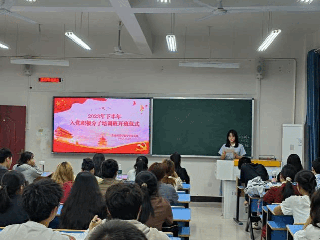 为切实加强入党积极分子的培养教育和考察,提高入党积极分子的政治素质和理论修养,严格把好发展党员“入口关”学院1018日在21103教室举行2023年下半年入党积极分子培训班开班仪式。学院党委书记何旭梅、学生党支部书记任梦雅出席59名入党积极分子参加