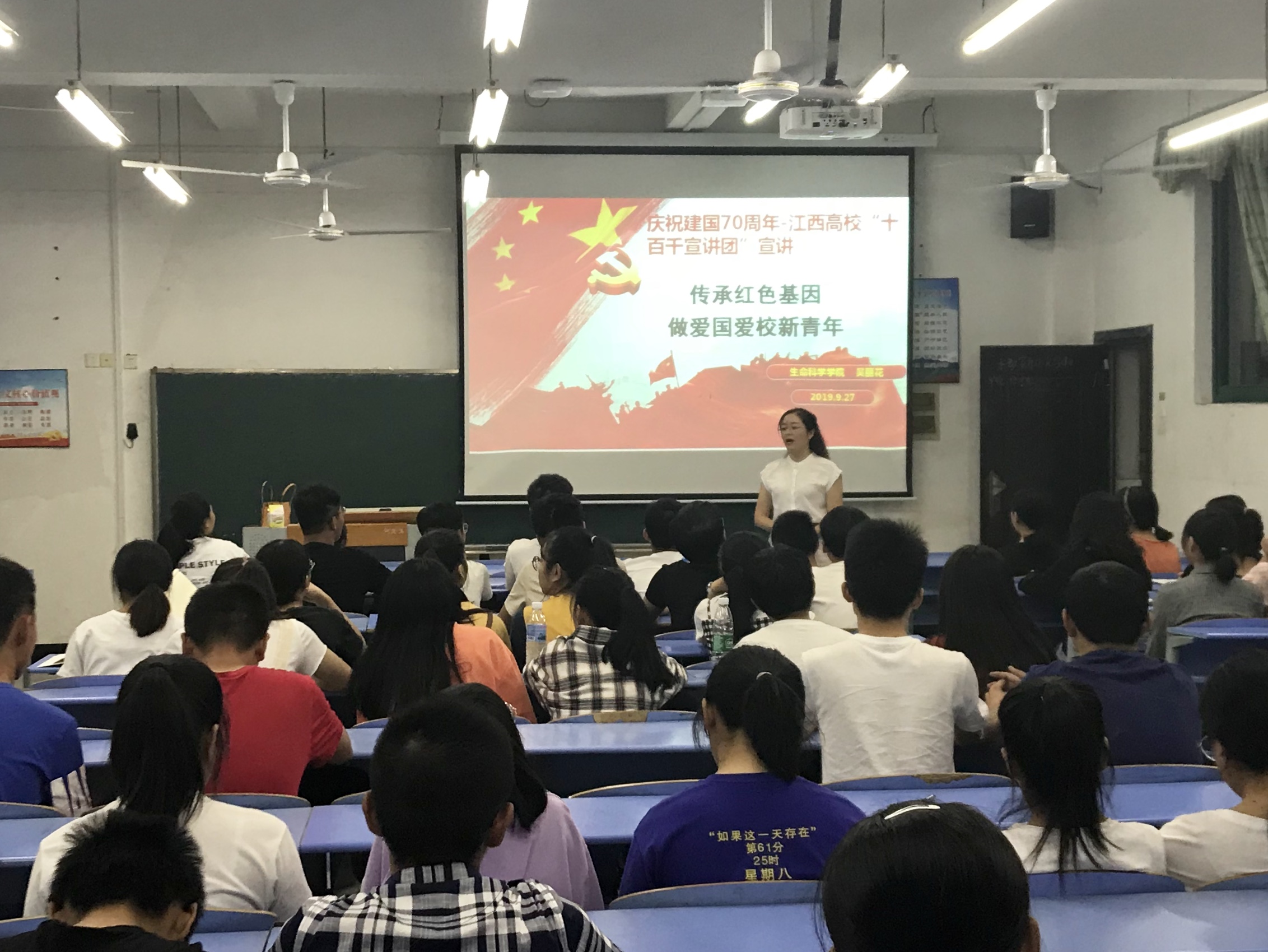 为提高学生党员与积极分子的政治素养,同时增强19级同学的爱国热情,新生辅导员兼学生支部书记吴丽花老师于9月27日,在9栋206进行主题为“传承红色基因,做爱国爱校新青年”的党课宣讲,该党课也作为一场辅导员爱国主义形式宣讲。学院全体学生党员、积极分子以及19生科、19园林的全体同学出席了本次会议。