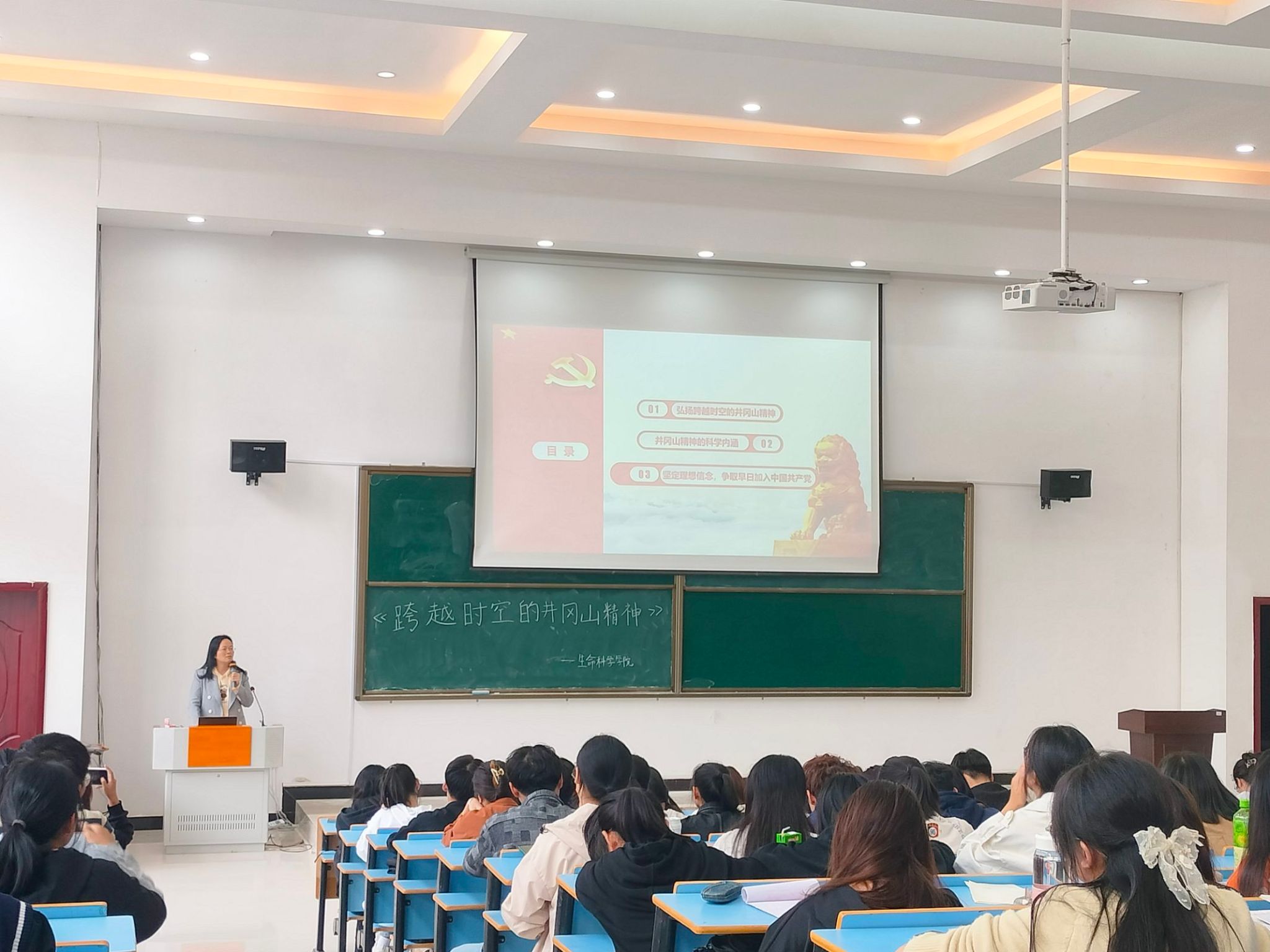 讲座伊始,何旭梅从弘扬跨越时空的井冈山精神井冈山精神的科学内涵坚定理想信念争取早日加入中国共产党三个方面进行深刻阐述。用先辈们的英雄事迹和重大的历史事件,让同学们深刻了解到革命根据地的曲折发展和井冈山精神的重要内涵。勉励青年学子要坚定理想信念认真学习领悟井冈山精神,井冈山精神内化于心,外化于行努力学习科学文化,提高学习水平和能力传承发扬井冈山精神,牢记初心使命,时时处处做好先锋模范带头作用。