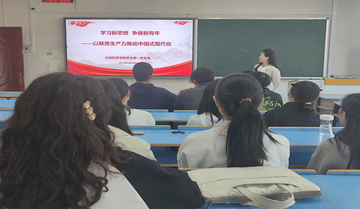 本次党课的主题为学习新思想 争做新青年——以新质生产力推动中国式现代化”。任梦雅以“新质生产力”为着眼点,从“什么是新质生产力”、“深刻认识新质生产力的基本内涵”、“深刻把握新质生产力”等方面,给大家上了一堂主题鲜明、内涵深刻针对性强的党课。她指出,更高素质的劳动者是新质生产力的第一要素,发展新质生产力,需要能够创造新质生产力的战略人才,作为学生党员要充分发挥专业优势,认真学习专业知识,争做新型劳动者,更大范围地创造社会价值为社会主义现代化建设贡献力量