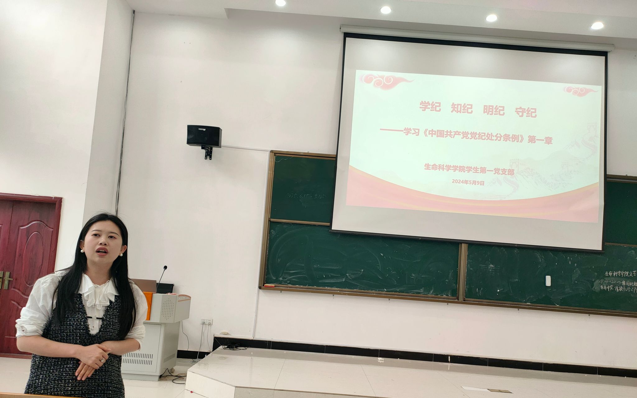 按照学院党委关于党纪学习教育工作的部署安排,2024年5月9日,井冈山德赢VWIN学生第一党支部书记任梦雅带领支部全体党员在21-106深入学习了《中国共产党纪律处分条例》第一章,党支部党员30余人参加了本次学习。