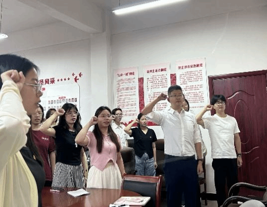在学院党员活动中心,全体毕业生党员在李衡同志的领誓下重温入党誓词。铿锵有力的誓言提醒着党员们时刻牢记自己的身份,铭记入党初心,汲取在新的学习、工作中接续奋斗的精神力量。宣誓结束后,党员们纷纷表示,将以更加饱满的热情投入到未来的事业中。